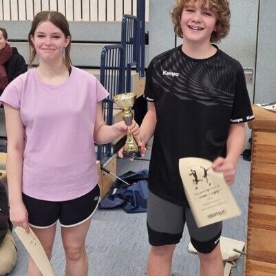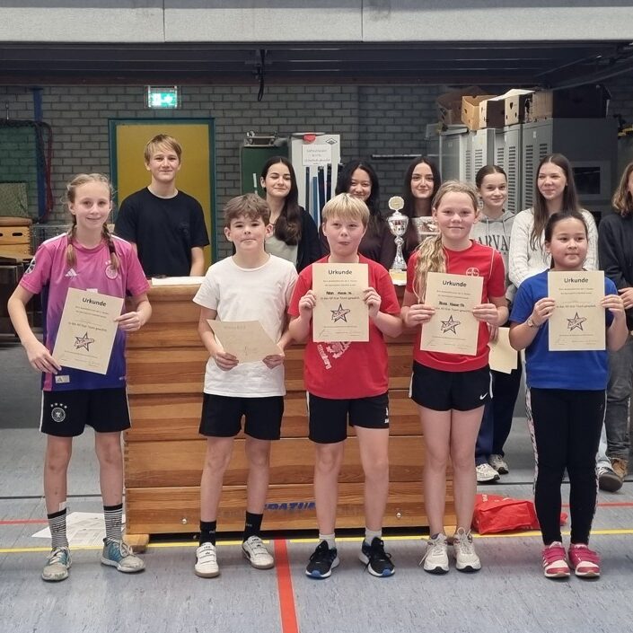 Ein mitreißendes und spielerisch tolles Badminton-Turnier fand am Donnerstag, den 11.12.25 statt. Jede 8. Klasse stellte jeweils 8 Mixed-Paarungen, die erst im Gruppen- und dann im K.O.-Modus tolle und vor allem sehr faire Spiele austrugen. Nach knapp 3 Stunden und insgesamt 7 Spielrunden standen die Sieger-Paarungen fest und holten sich den verdienten Applaus, ihre Süßigkeiten